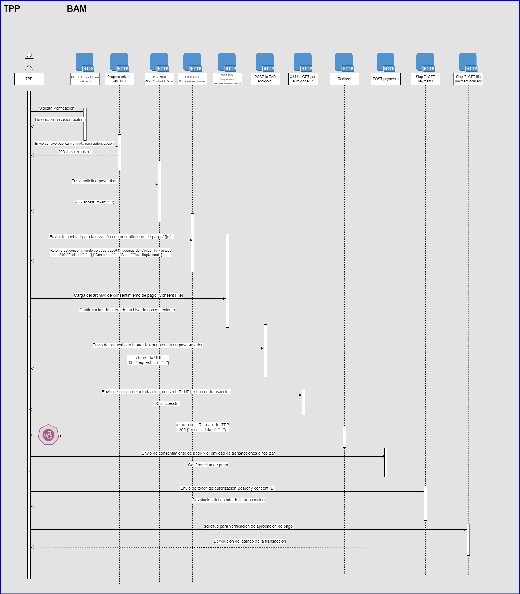 Verifique que los certificados utilizados estén correctamente configurados y activos. Se recomienda realizar las pruebas utilizando la colección de Postman proporcionada por BAM, ya que permite comprender el funcionamiento de cada proceso. Dicha documentación es una réplica detallada de lo que encontrará la colección de Postman compartida por BAM Dispersión de Fondos.